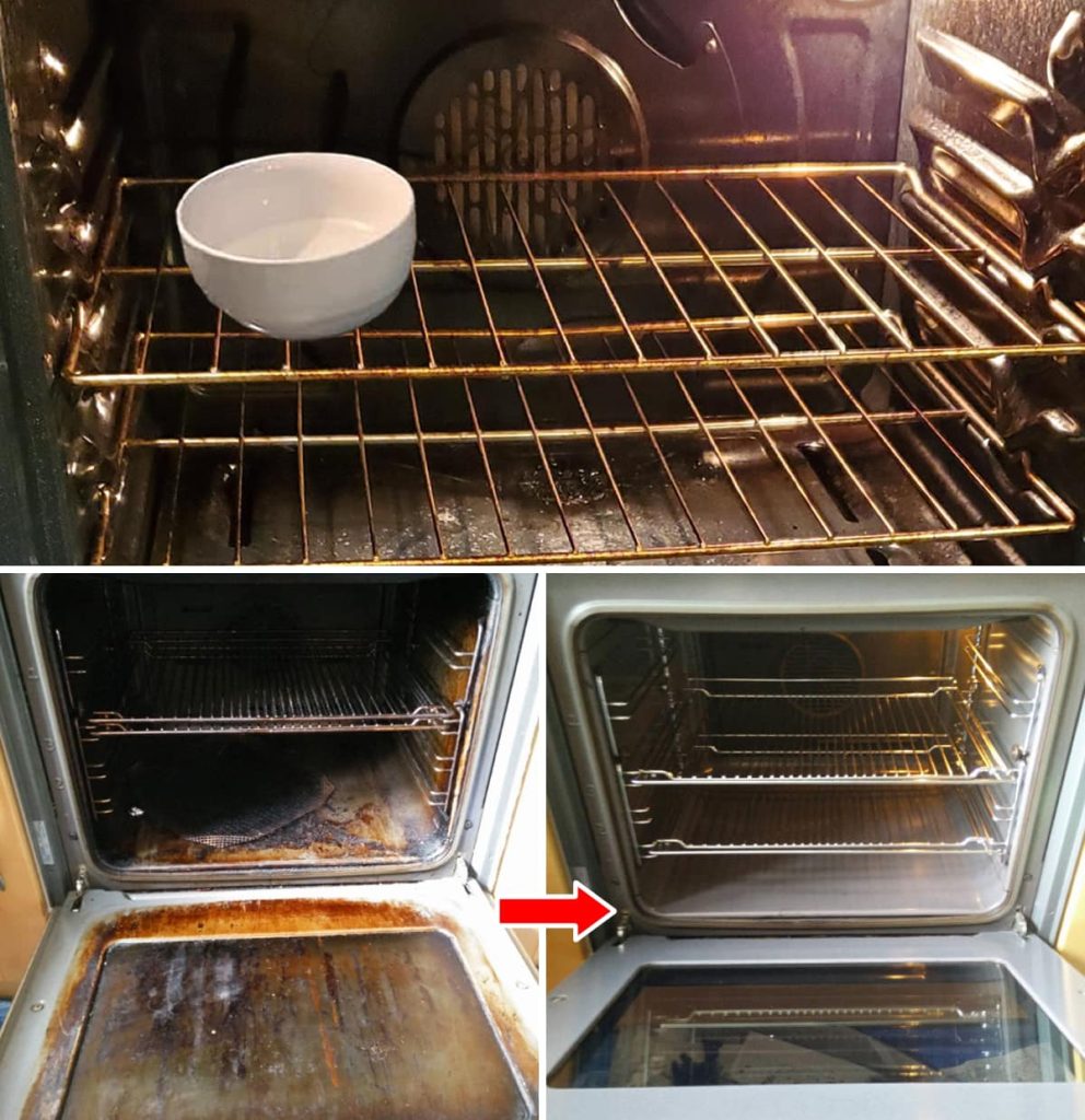 With this solution, we can clean kitchen utensils, but also remove encrusted grease from the stove. When finished, wipe with a damp cloth to remove any residue.