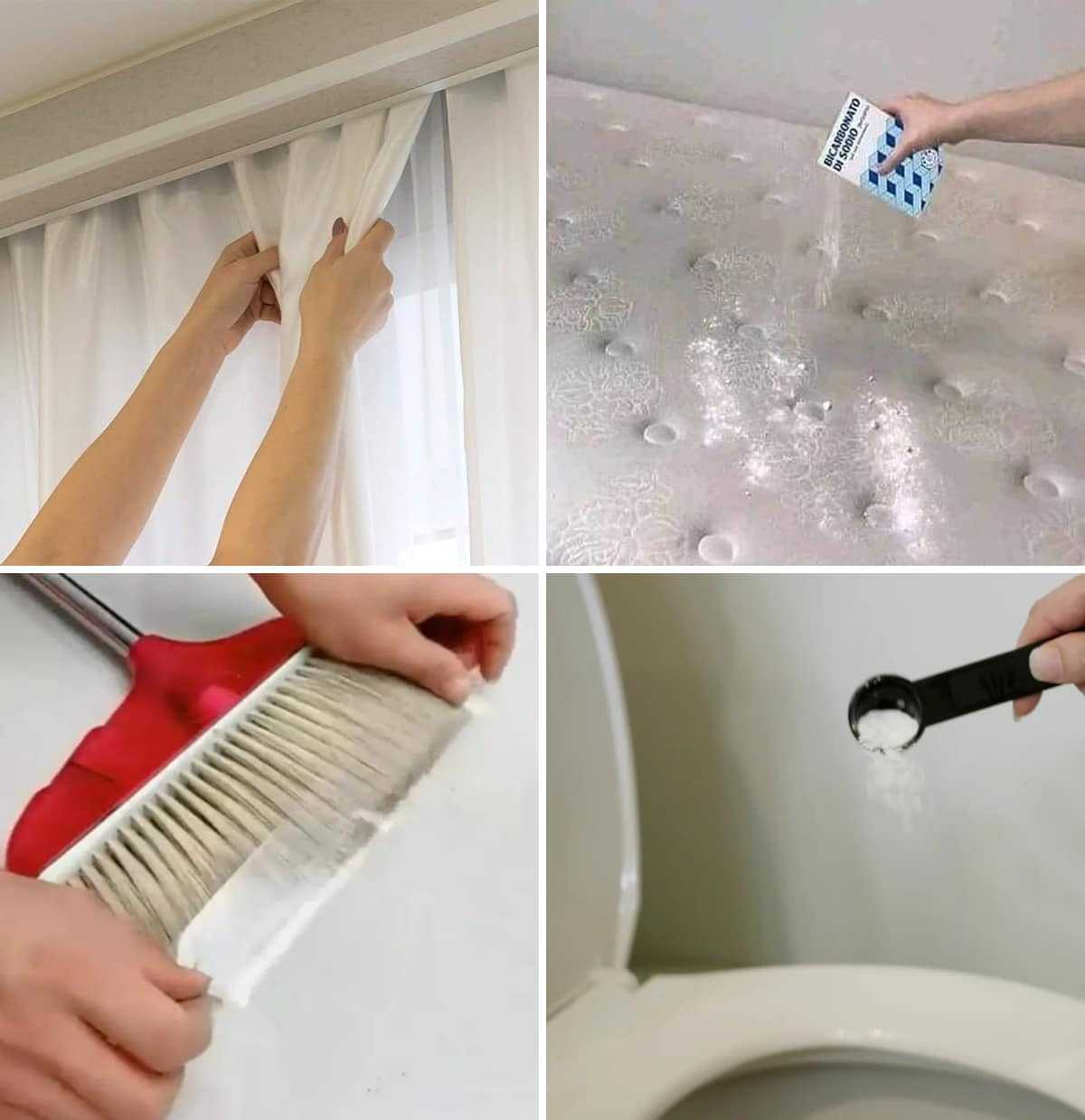 Leave the products to act for about ten minutes on the dirtiest surfaces, such as the toilet, the hob or the carpets.
