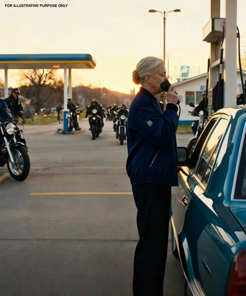 They pulled into Mike’s Gas & Go like a storm unleashed – black leather, mirrored shades, and a circle of chrome surrounding a battered old Ford.