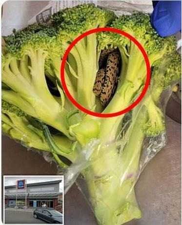 A customer buys a bunch of broccoli and then sees something moving near the stem