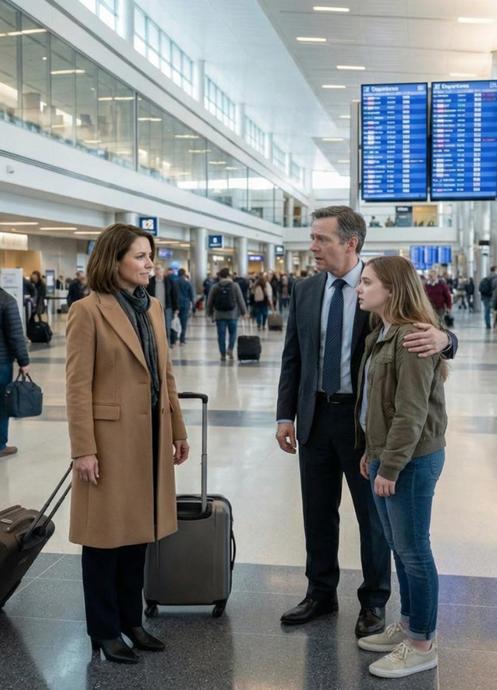 At the airport, I almost let go of my suitcase when I saw my husband’s arm wrapped around a younger woman’s waist. But instead of yelling, I smiled and said, “What a surprise… big brother, aren’t you going to introduce me?” Her face turned deathly pale. My husband froze completely, like the ground had disappeared beneath him. In that instant, …