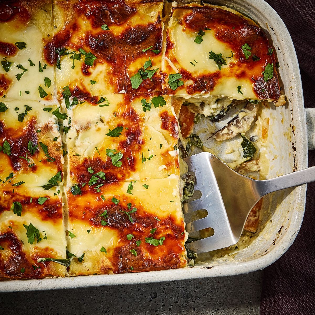 Butternut Squash, Mushroom, and Spinach Lasagna