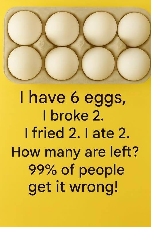 “I have 6 eggs. I broke 2, fried 2, and ate 2. How many eggs are left?” This deceptively simple riddle has stumped millions online—because it plays with assumptions. Most people instinctively think: “2 + 2 + 2 = 6… so 0 eggs left!” But that’s where the trick lies. Let’s break it down—logically, not … Read more