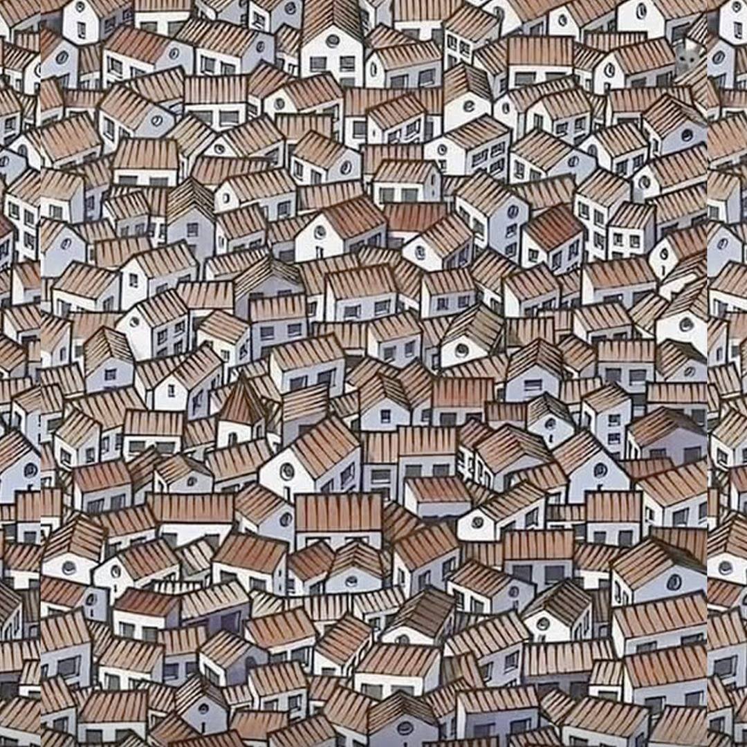 Can you find the cat hidden between the houses?