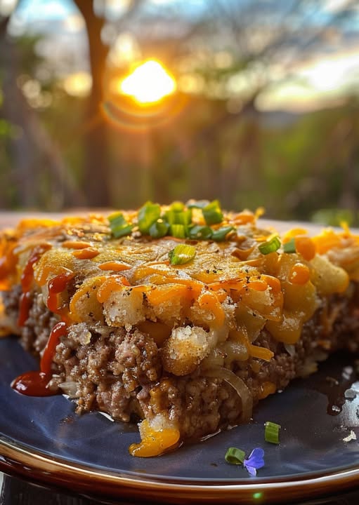 Enjoy this Cheesy Tater Tot Meatloaf Casserole with your family or friends, and savor the delicious flavors!