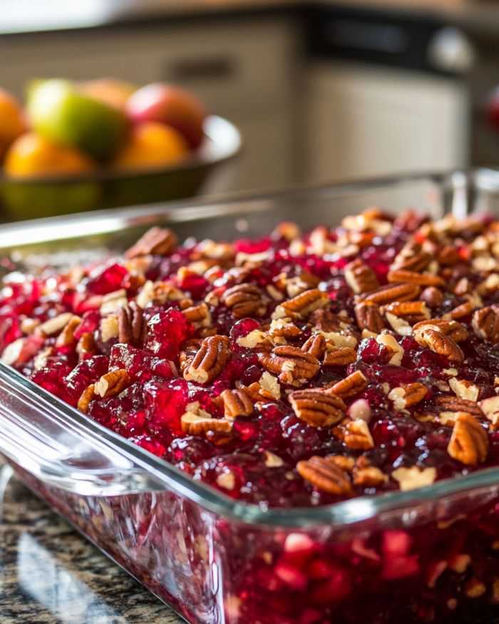 This Cranberry Jello Salad recipe is a delightful walk down memory lane. It’s a dish that has graced many Midwestern holiday tables, from Thanksgiving to Christmas. The cranberries add a tangy twist to the classic Jello salad, and it brings a lovely pop of color to any spread. It’s a recipe that reminds me of the festive gatherings at Grandma’s house, where this salad was always a centerpiece among the other hearty, home-cooked dishes. It’s a perfect balance of sweet and tart, and a joy to make with loved ones.