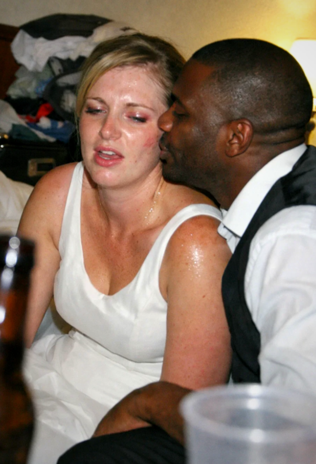 The room is still warm, still full of the quiet remains of your wedding day—but something inside it has shifted. A slice of cake sits untouched on the counter. Your shoes are scattered where you left them. Everything looks normal.
