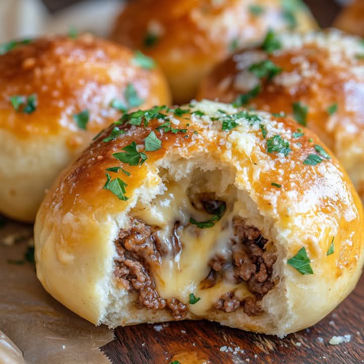 Place balls seam-side down on a baking sheet. Mix melted butter with garlic powder and brush over the tops. Sprinkle with Parmesan. Bake at 375°F (190°C) for 15–18 minutes until golden brown.
