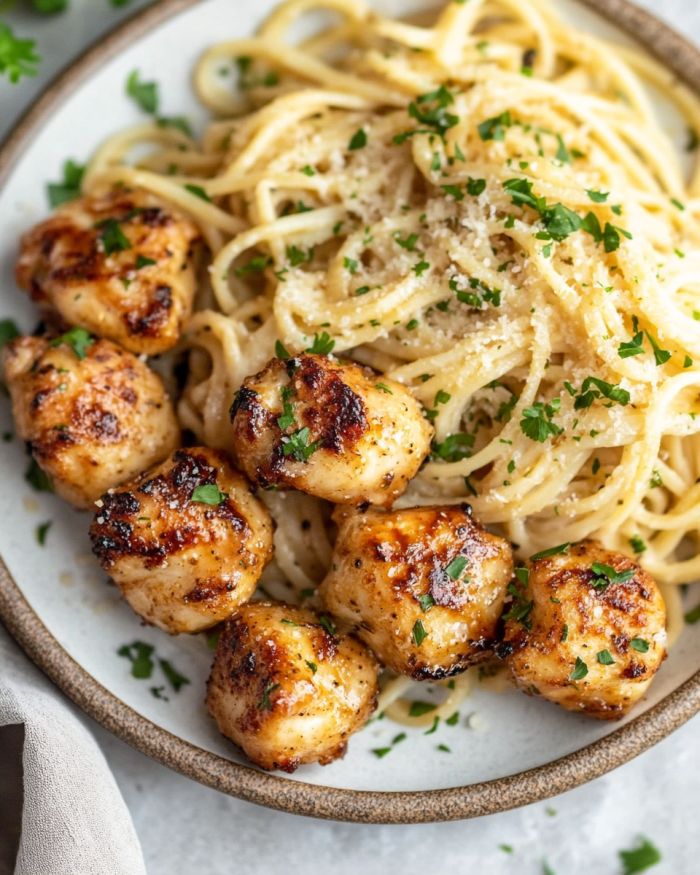 Garlic Butter Chicken Bites with Savory Parmesan Linguine