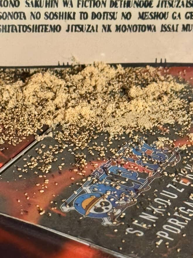 So I was deep-cleaning my room the other day, moving stuff around, wiping shelves, the usual — when I noticed this gross pile of tiny yellow-brown granules sitting right next to my One Piece DVD case. At first, I thought it was just dust or crumbs… but then I looked closer.