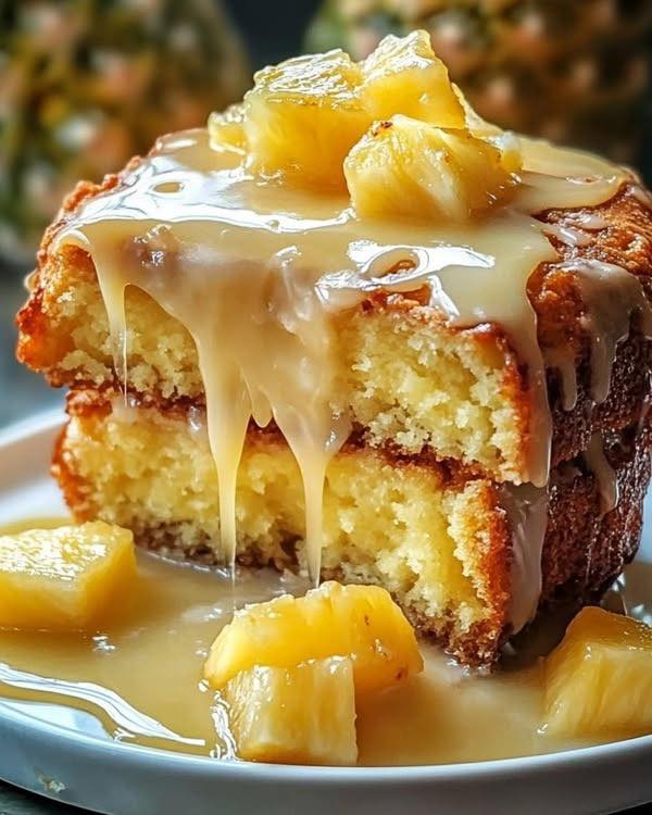 In a small bowl, whisk together the powdered sugar and pineapple juice to make a glaze. Drizzle over the cooled cake.
