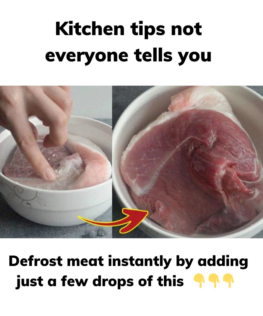 Put a few slices of lemon and ginger in water, then soak the meat for 10 minutes, the meat will slowly soften. Ginger and lemon help the meat defrost quickly, have a natural aroma, it is also effective in removing bacteria and fishy smell.