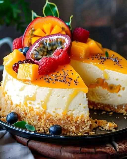 π½οΈ Enjoy the exotic combination of mango and passionfruit in this creamy cheesecake cake, ideal for celebrating any occasion! This recipe combines the tropical flavors of ripe mango and tangy passionfruit with a rich cheesecake filling, making it a delightful and refreshing dessert.