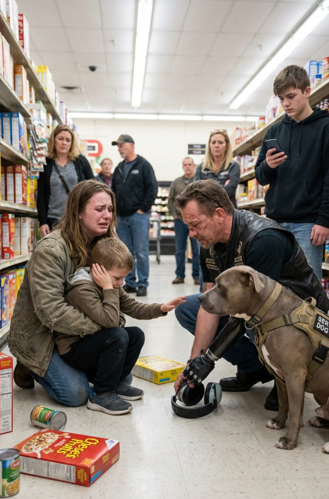 My Autistic Son Was Screaming on a Grocery Store Floor While Strangers Filmed—Then a Scarred, One-Armed Biker Stepped Forward… and What He Did Silenced the Entire Room