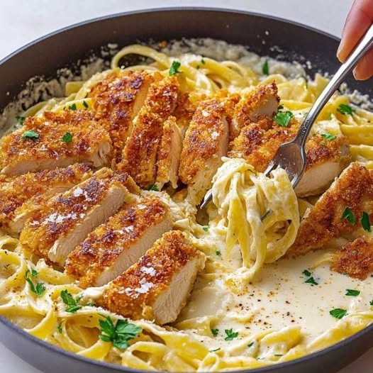 Crispy Chicken & Alfredo Tagliatelle: The Perfect Combination of Crunchy and Creamy