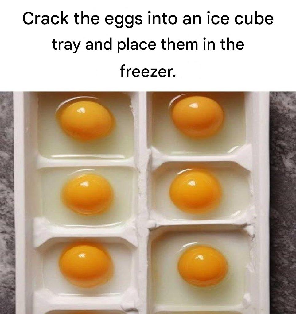 Crack eggs into an ice cube tray and put them in the freezer. Here’s why
