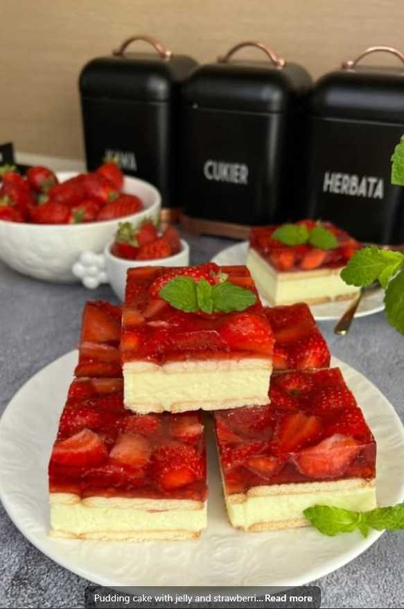 Title: A Refreshing Delight: Pudding Cake with Jelly and Strawberries
