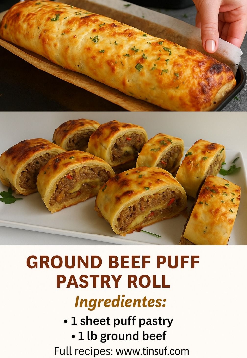 Roll out the puff pastry sheet on parchment paper. Spread the beef mixture evenly across the surface, leaving a 1-inch edge on all sides.