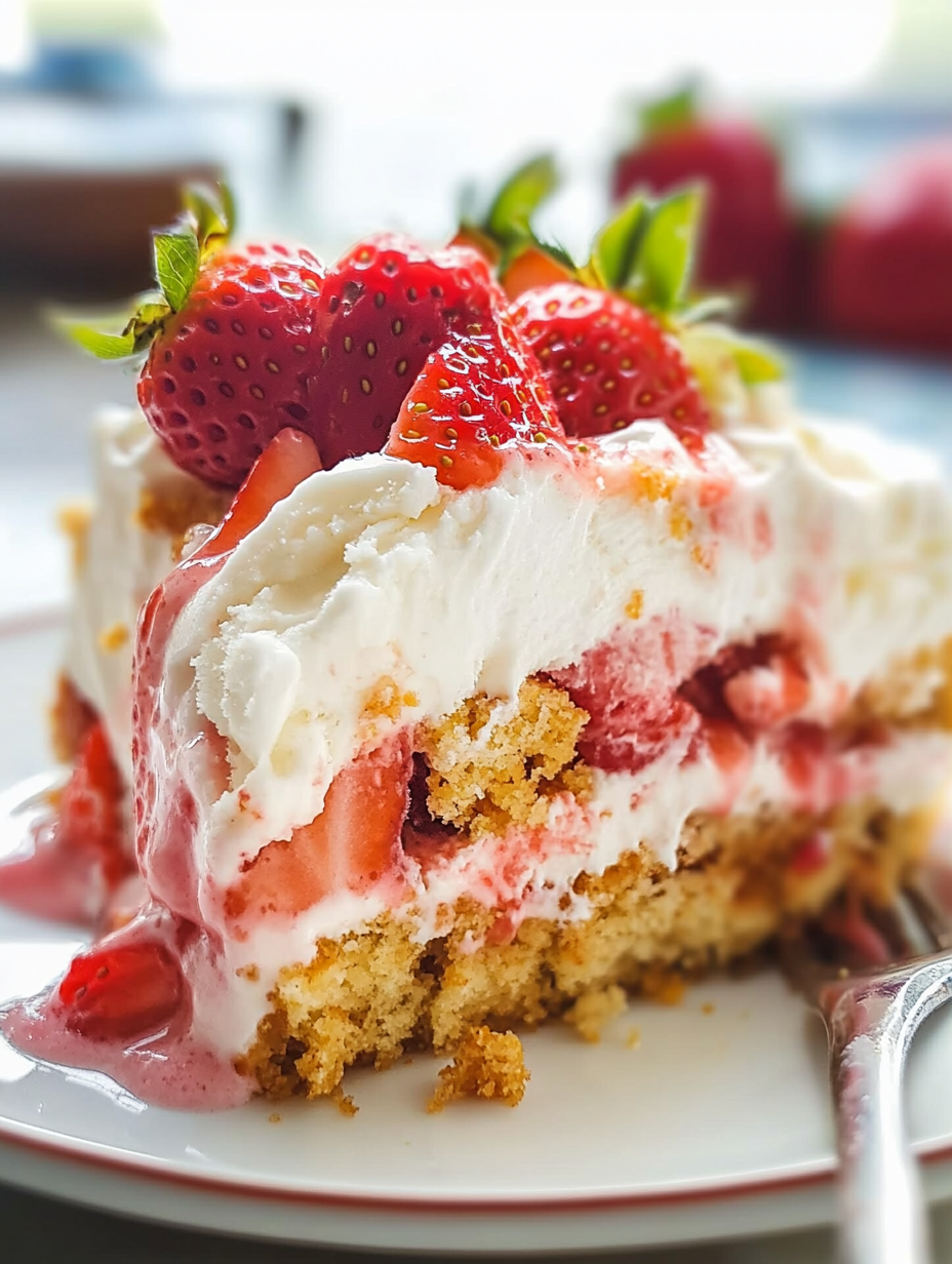 This layered Strawberry Shortcake Ice Cream Cake is guaranteed to impress! Featuring buttery cookie crumbles, creamy strawberry ice cream, and a homemade berry sauce, it’s a refreshing no-bake treat perfect for any occasion!