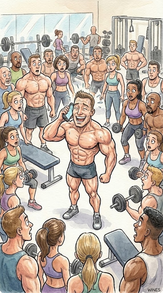 Several men were in the locker room of the gym when a cell phone on a bench rang and a man put it on speaker and begins to talk. Everyone in the room stopped to listen.