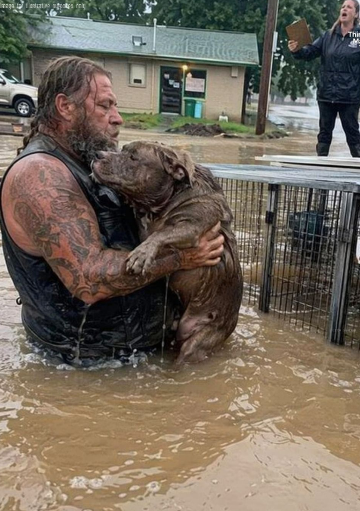 The shelter manager abandoned the scarred pitbull to drown in the rising floodwaters, but a massive, tattooed biker broke every rule to prove who the real monster was.
