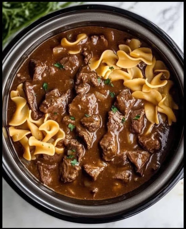 This dish pairs wonderfully with a freshly baked loaf of crusty bread to soak up the savory gravy. Consider serving it alongside a simple green salad with a light vinaigrette to balance the richness. For a true Midwestern touch, add a side of sweet corn or steamed green beans with a pat of butter. And don’t forget a slice of homemade pie for dessert to complete the meal. It creates a welcoming, uncomplicated dinner that everyone will love. To make it, you’ll need: 2 lbs of beef stew meat or chuck roast (cut into bite-sized pieces), 1 finely chopped onion, 3 cloves of minced garlic, 4 cups of beef broth, 1 tsp salt, 1/2 tsp black pepper, 1 tsp dried thyme, 1 tsp dried rosemary, 1 bay leaf, 3 cups egg noodles, 1/4 cup flour, 1/4 cup water, and 1 tbsp Worcestershire sauce.