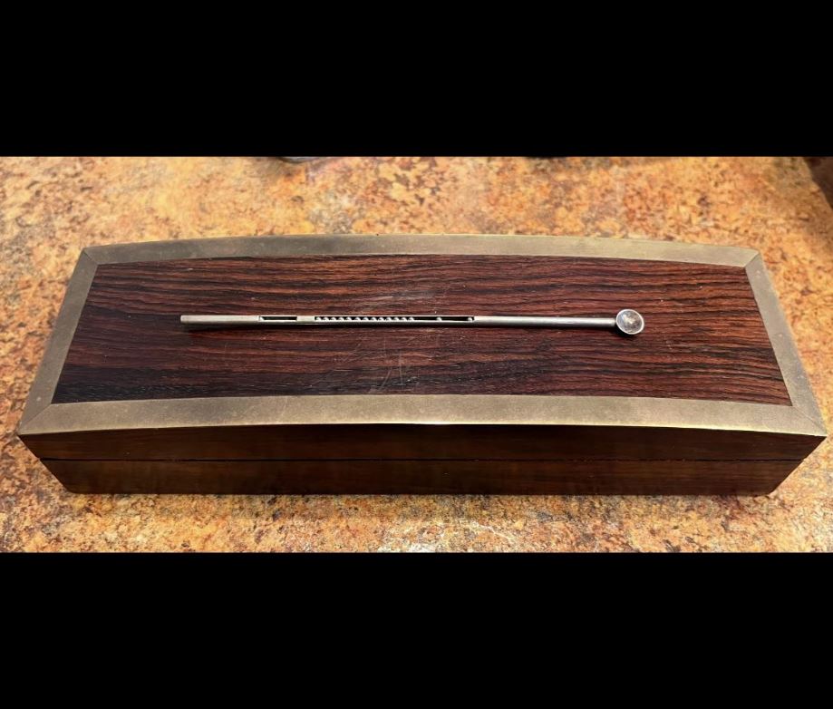 If you’re lucky enough to stumble upon a mysterious instrument like this one – a finely crafted object that evokes the careful precision of a bygone era – your imagination may quickly race through possibilities. The slender metallic device atop the wooden box immediately draws attention with its precision-crafted slots and grooves, possibly hinting at its use for intricate, detailed work. Was it used by a pharmacist to measure fine powders? Or perhaps it had a role in delicate scientific or medical practices? Let’s explore the potential history behind this captivating piece.