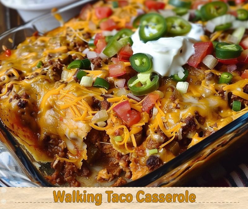 Take your taco night to the next level with this delicious and easy-to-make Walking Taco Casserole! Perfect for family dinners or gatherings, this dish combines all your favorite taco flavors in one mouthwatering casserole. ๐