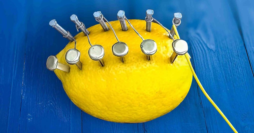 The interaction of copper, zinc and lemon juice leads to a chemical reaction. Result: copper receives a positive charge and zinc a negative charge. Once connected by wires, you can generate electricity alone at home.