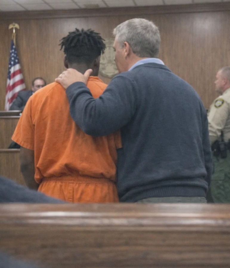 Keon sat at the defense table with his head down, hands trembling inside a pair of handcuffs that looked too big for his wrists.