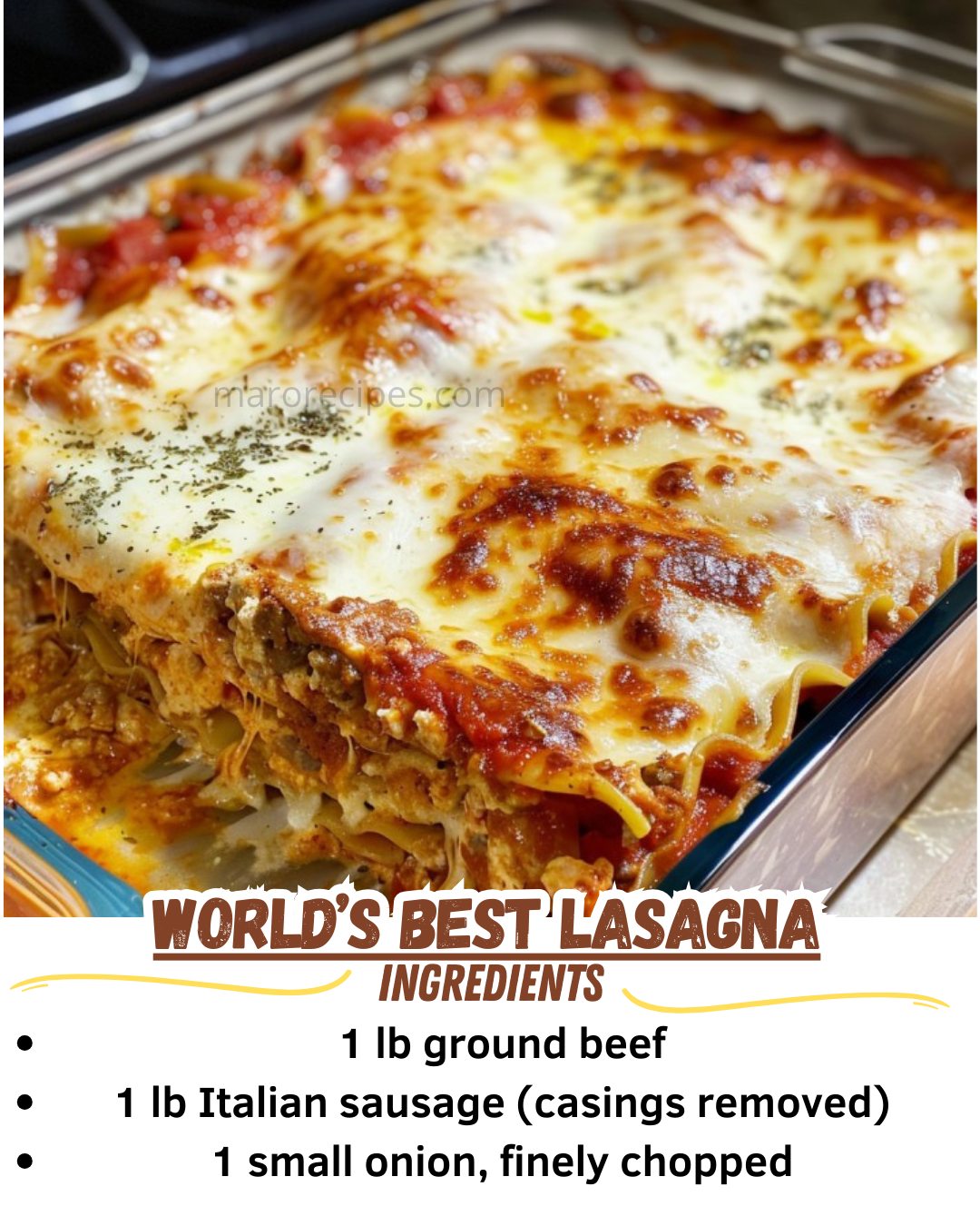 This World’s Best Lasagna recipe is a true celebration of Italian cuisine. With its rich layers of meat sauce, perfectly cooked noodles, and creamy cheeses, it’s a dish that’s sure to impress and satisfy. Whether you’re preparing it for a holiday gathering or a weeknight family dinner, lasagna is the kind of recipe that brings warmth and joy to the table. While it may take some time to prepare, the end result is nothing short of spectacular. This timeless classic will quickly become a favorite in your home—enjoy every cheesy, savory bite!